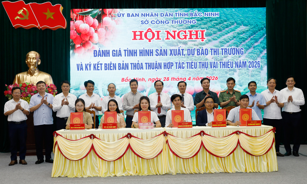 Sáng 28/4, Sở Công Thương tổ chức hội nghị đánh giá sản xuất, tiêu thụ và ký kết hợp tác tiêu thụ vải thiều năm 2026.