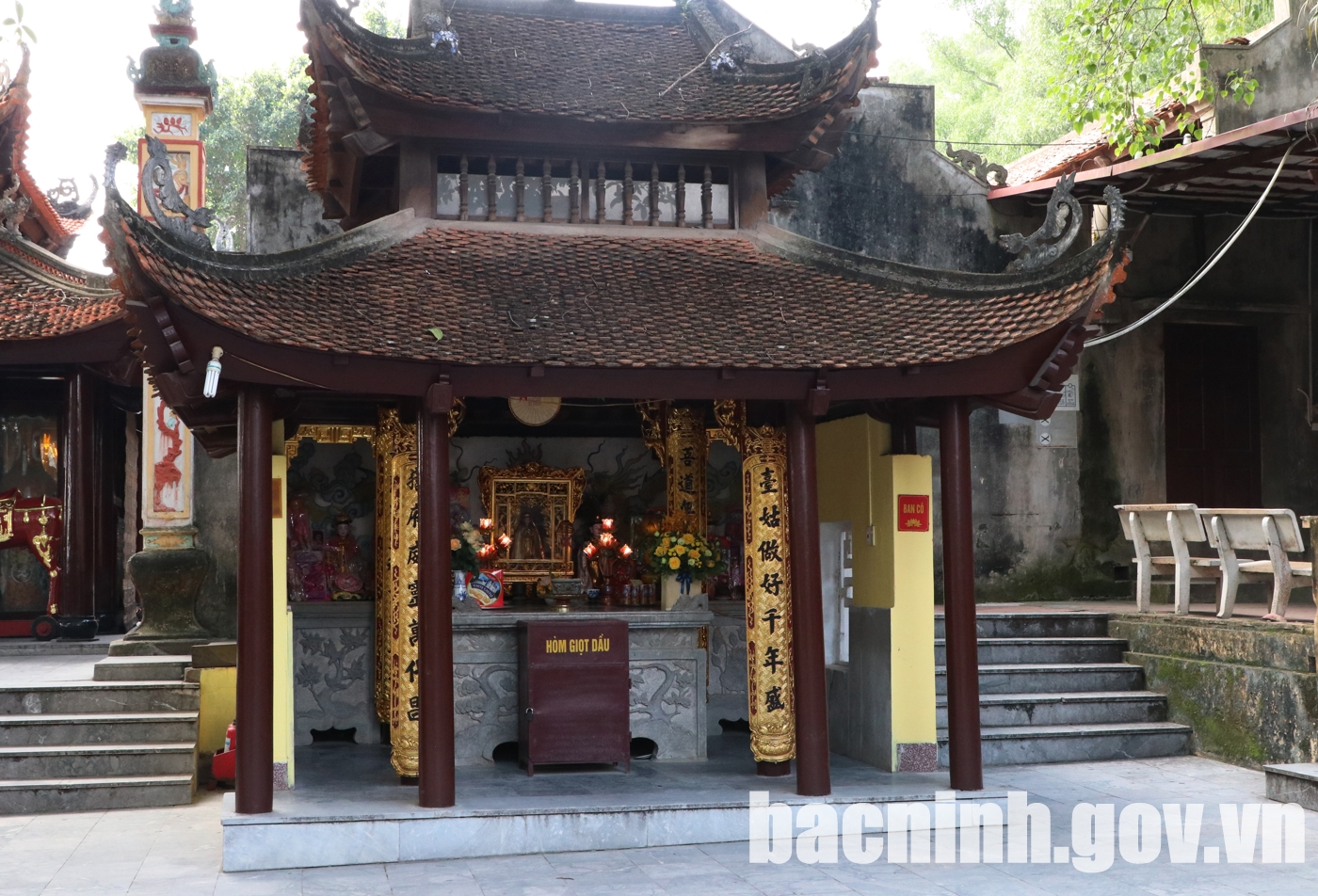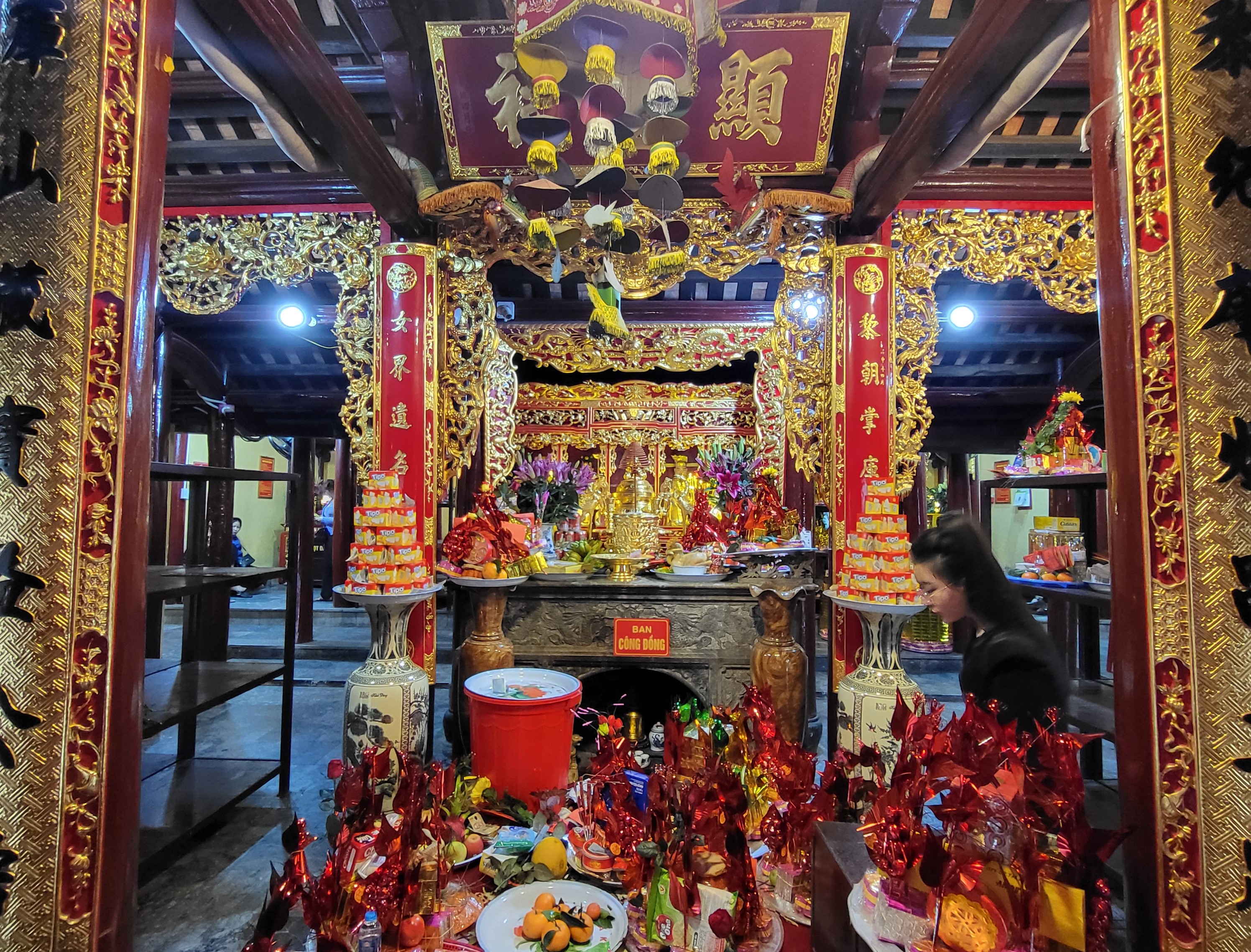 Tiến sâu vào bên trong là Hậu cung - Nơi linh khí hội tụ. Đây là nơi đặt ban thờ Bà Chúa Kho, luôn đỏ lửa nhang khói quanh năm. Mỗi nén nhang thắp lên, mỗi lời khấn nguyện, như một sợi chỉ vô hình nối người trần với cõi thiêng.