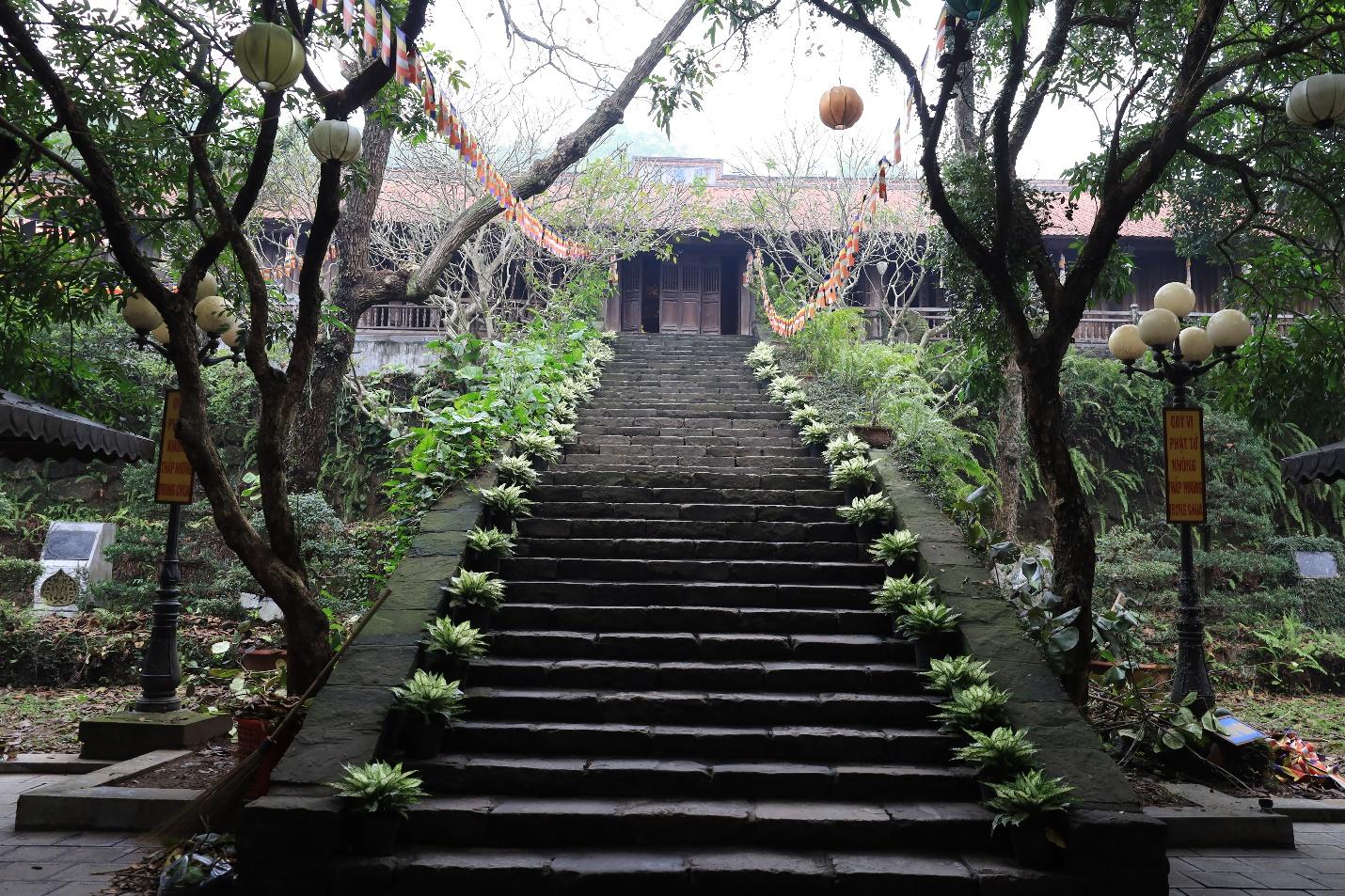 Những bậc đá cổ dẫn lên tòa Tam bảo mang lại không gian cổ kính, linh thiêng của một ngôi cổ tự.