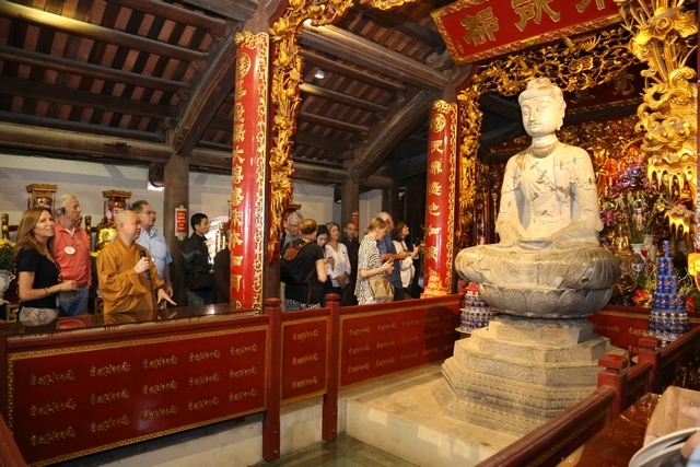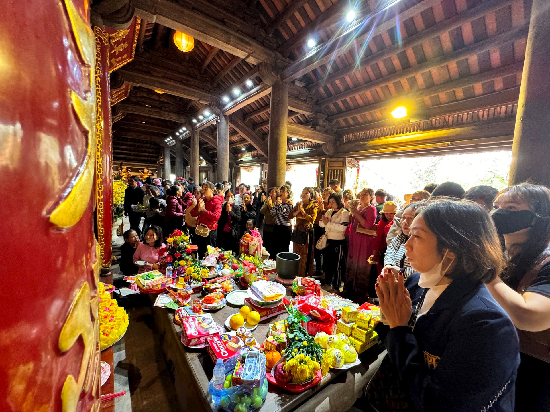 Du khách lễ Phật tại Tòa Tam bảo chùa Phật Tích