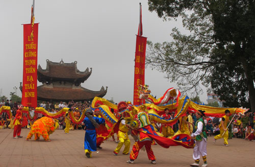 Sân rồng trước tòa Phương đình Đền Đô là nơi du khách thực hiện nghi lễ dâng hương tưởng niệm các vị vua triều Lý