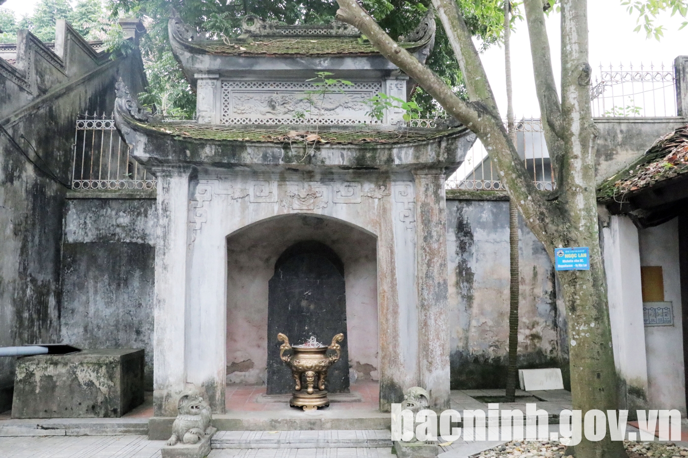 Bia đá “Cổ Pháp Điện Tạo Bi” do Tiến sỹ Phùng Khắc Khoan soạn dựng năm Giáp Thìn (1605) ghi lại sự kiện lịch sử nhà Lê xây dựng lại Đền và ghi công đức của các vị vua triều Lý
