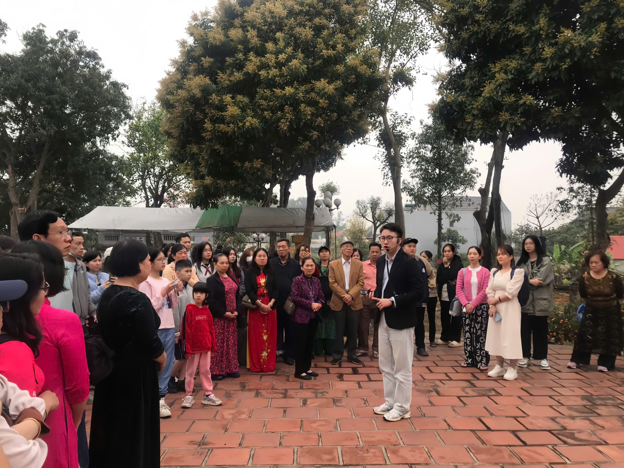 Du khách đến tham quan, chụp ảnh tại đền thờ Thái sư Lê Văn Thịnh
