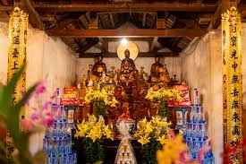Chùa Tổ vốn được khởi dựng từ lâu đời và được trùng tu qua nhiều triều đại, đến nay chỉ còn tòa Tam Bảo thượng (Thượng điện) là công trình kiến trúc của thời Nguyễn còn bảo lưu khá nguyên vẹn. Đây là nơi thờ Phật mẫu Man Nương. Tượng Phật mẫu Man Nương được tạo tác trong tư thế tọa thiền trên tòa sen, cao gần 1,70m, được tạo giống với các tượng Tứ Pháp, khuôn mặt từ bi thánh thiện, toàn thân phủ một lớp sơn mầu mận chín đầy vẻ huyền bí linh thiêng.