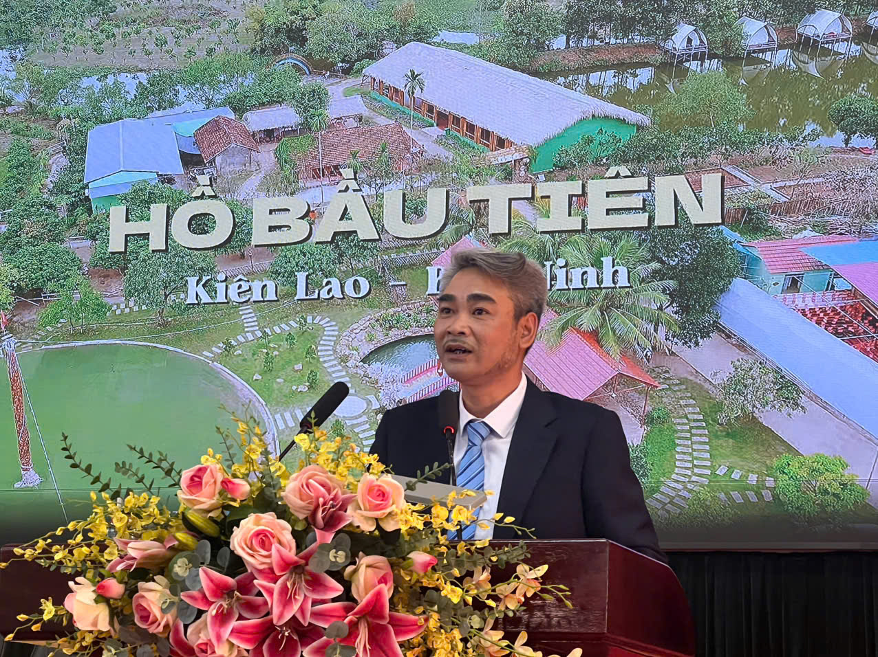 Đại diện điểm du lịch Bầu Tiên giới thiệu điểm đến tại Hội nghị